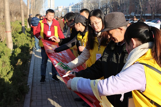 3月6日,由我院学子和滨州众智社会工作服务中心联合发起的“关爱环卫工人,拒绝车窗抛物”学雷锋志愿服务活动在滨州银座中海店广场顺利开展。