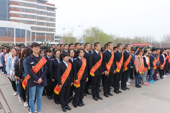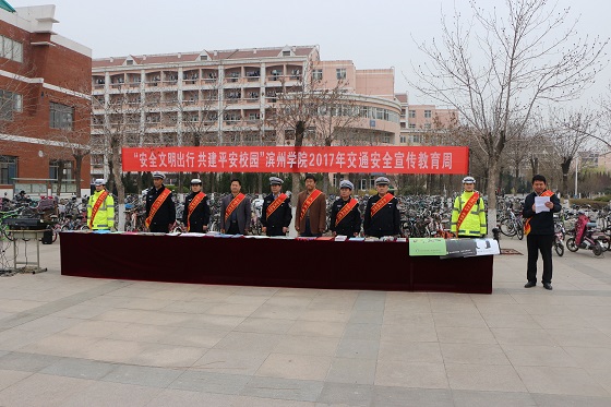 3月20日上午,suncitygroup太阳成集团50余名学生在二餐广场参加了由保卫处举办的“安全文明出行,共建平安校园”2017交通安全宣传教育周开幕式活动。