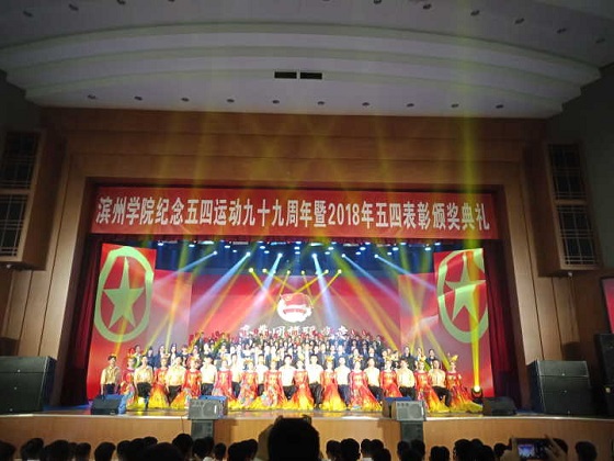 5月3日晚,我校在学苑会堂隆重举行了“高举团旗跟党走”——滨州学院纪念五四活动九十九周年暨2018年五四表彰颁奖典礼。学校党委书记、校长刘春华,党委副书记宋淑平等出席本次典礼并为受表彰的先进集体和个人颁奖。suncitygroup太阳成集团30余名优秀团员代表参加了本次颁奖典礼。