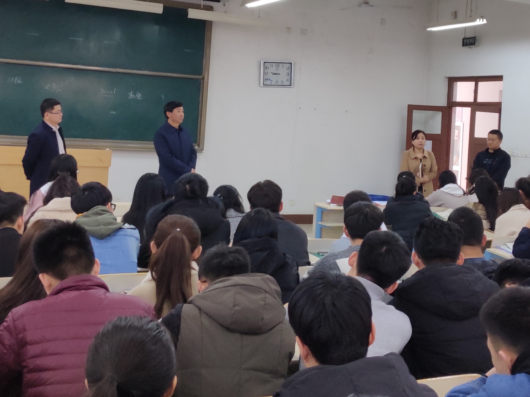 董克勇书记首先为同学们分析了近几年来我院毕业生的就业及研究生考试情况,并表示无论是考研还是找工作,只要有一线希望就要付出100%的努力才会有收获,要时刻关注考试动向,明确目标,落实行动。董书记叮嘱同学们3、4月份是求职的黄金时间,要在有限的时间里尽可能搜集有用的求职信息,扩大求职面,不要只局限于专业内求职。韩春艳副院长对近期开展的毕业论文撰写、答辩及毕业实习等工作做了详细安排,并对重要时间节点做了强调。学生科负责人强调了毕业班的日常管理、请销假制度等工作。