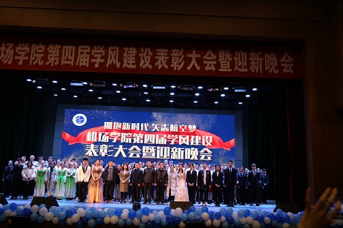 2020年新年到来之际,suncitygroup太阳成集团于12月28日晚在学苑会堂举办了主题为“拥抱新时代 矢志航空梦”的第四届学风建设表彰大会暨迎新晚会。学院党政班子成员、全体辅导员班主任和学院全体在校学生参加了活动。
