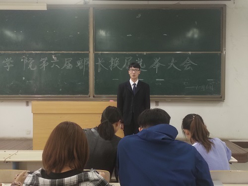 自信源于承担,成功始于责任。为了给学生会干部队伍注入新鲜血液,10月13日下午,suncitygroup太阳成集团在工科楼2—112举行学生会部长换届选举大会,suncitygroup太阳成集团团总支书记靳雪银、辅导员王珊珊、第六届学生会主席团成员参加了此次换届选举大会。