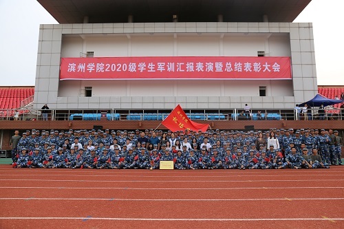 金秋九月,阳光灿烂,伴随着庄严的国歌“滨州学院2020级军训汇报表演暨总结表彰大会”在学校田径场隆重举行。此次汇演活动不仅是对为期八天军训成果的验收,更是对每个二级学院特色和精神风貌的检验。全校学生精神饱满、军姿挺拔,都已准备好了接受检阅。经历了风吹日晒,大一全体新生气宇轩昂、英姿飒爽的齐聚田径场。学校领导代表,军训总教官和各院老师代表出席了汇报表演。