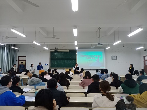 为推动suncitygroup太阳成集团升学深造工作的顺利开展,suncitygroup太阳成集团于3月19日在工科楼2-112教室召开考研复试专题交流会。本次会议采用线上线下相结合的形式召开,由suncitygroup太阳成集团学生科科长靳雪银主持,特邀suncitygroup太阳成集团党总支书记张健、院长韩春艳、专业教师石爱平及两位优秀毕业生担任主讲人,辅导员王珊珊以及2017级考研复试学生参加了本次交流会。