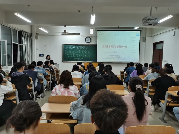 为响应滨州学院校团委有关党史学习教育号召,认真贯彻落实和开展相关教育工作。suncitygroup太阳成集团于3月28日在8教508教室,开展了“学党史、强信念、跟党走”党史学习教育动员大会。本次由suncitygroup太阳成集团学生团总支书记靳雪银同志主持,非毕业班全体团干部参加。