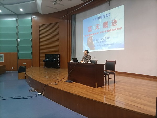 会议伊始,院长韩春艳详细介绍李华星教授的学术成就与科研成果,并表示诚挚的欢迎。接着,李华星教授以“蓝天鹰迹”为主题,向在座学生提出“中国航空爆发式增长的精神力溯源是什么?”这一问题,并展开讨论。首先,李教授带领同学们围绕军事战争、空军建设、中国航空研究历程这三方面,讲述了中国民航发展史。通过介绍空客380飞机的研发以及新中国成立70周年阅兵仪式,阐述我国机场建设与航空发展等方面实现的历史性跨越,详细分析我国航天事业发展现状与远大前景。接着,他生动讲解了军机“三剑客”与民机“三朵花”的辉煌事迹。在报告中,李华星教授以视频形式向大家讲述“美国轰炸中国驻南斯拉夫大使馆事件”、“钱学森的回国之旅”、“杨伟与罗时钧的故事”,表明中国航空的发展离不开一代又一代民航人的不懈奋斗。同时,他要求同学们今后要努力学习,追求卓越,传承“民航精神”,做祖国新一代航空栋梁,为祖国航空事业做出贡献。在谈到职业发展前景时,他指出要严格自律,从最基础的工作做起,脚踏实地走好每一步。在与学生分享个人工作经验时,他建议各位同学不断培养服务意识和团队协作精神。至此,本次“航空大讲堂”学术报告会在现场热烈的掌声中圆满结束。