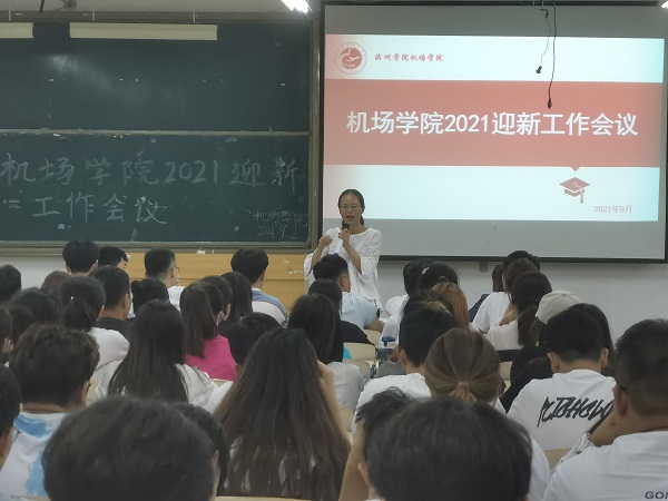 会议伊始,靳雪银老师简要阐述迎新工作的整体框架,并就迎新工作的不同情况向同学们详细解读,介绍省内外新生报到的不同方案以及省外同学入校隔离等问题的注意事项。紧接着,她对接下来的迎新工作做出统一的安排和部署,并对辅导员助理和班主任助理提出要求,希望各位全力配合疫情防控管理,以高度的责任感和饱满的热情积极投入到迎新服务中。此外,她还特别指出,新生入学在即,关于新生宿舍清扫、迎新典礼筹备、军训防护措施等准备工作要仔细确认检验,以给新生留下美好印象,让他们尽快适应、融入大学生活。最后,靳雪银老师对所有同学提出希冀,希望各位同学在新学期仍严格要求自己,脚踏实地、严谨认真、相互协作,为新生树立榜样,共同发扬机场精神!至此,本次迎新工作会议圆满结束。