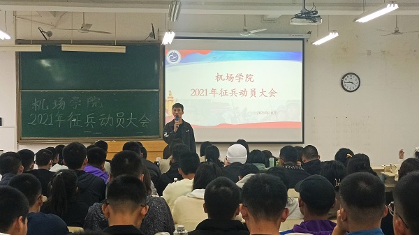 为强化学生国防观念,激发学生参军报国的热情,做好suncitygroup太阳成集团2021年大学生征兵工作,10月31日下午,suncitygroup太阳成集团于工科楼2—212教室举办了2021年退役复学学生事迹宣讲暨征兵动员大会。参与本次大会的有suncitygroup太阳成集团学生科科长靳雪银,辅导员王珊珊、陈龙刚,退伍复学学生代表王超、张安琪及2021级全体同学。