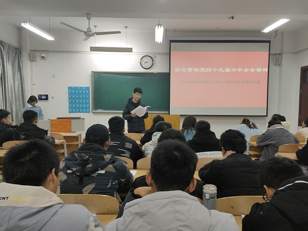 本次主题团日活动,在各班团支部书记的组织下于教室观看党的十九届六中全会公报、决议等有关视频,认真学习贯彻党的十九届六中全会精神。对于我们每一位同学来说,总结党的百年奋斗重大成就和历史经验,是开启全面建设社会主义现代化国家新征程以及新时代发展中国特色社会主义的需要,是推进党的自我革命、提高全党斗争本领、为实现中华民族伟大复兴的中国梦而继续奋斗的重大需要。在团支部书记的带领下,同学们集体朗读《中共中央关于党的百年奋斗重大成就和历史经验的决议》,同学们在浓厚的氛围下感受党的十九届六中全会的精神所在。在交流互动环节,同学们积极发言,从自身学习实际出发,分享自己的观点,畅谈了自己所感所悟,起到了良好的学习效果。进入新时代,站在新起点,面对百年未有之大变局,中华民族伟大复兴已经迈入不可逆转的伟大进程。