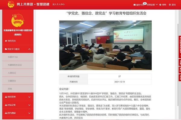 为引导广大青年团员深入学习贯彻党的十九届六中全会精神、习近平总书记“七一”重要讲话精神,贯彻落实“学史明理、学史增信、学史崇德、学史力行”要求,12月5日至17日,suncitygroup太阳成集团各团支部开展了“学党史、强信念、跟党走”专题组织生活会。