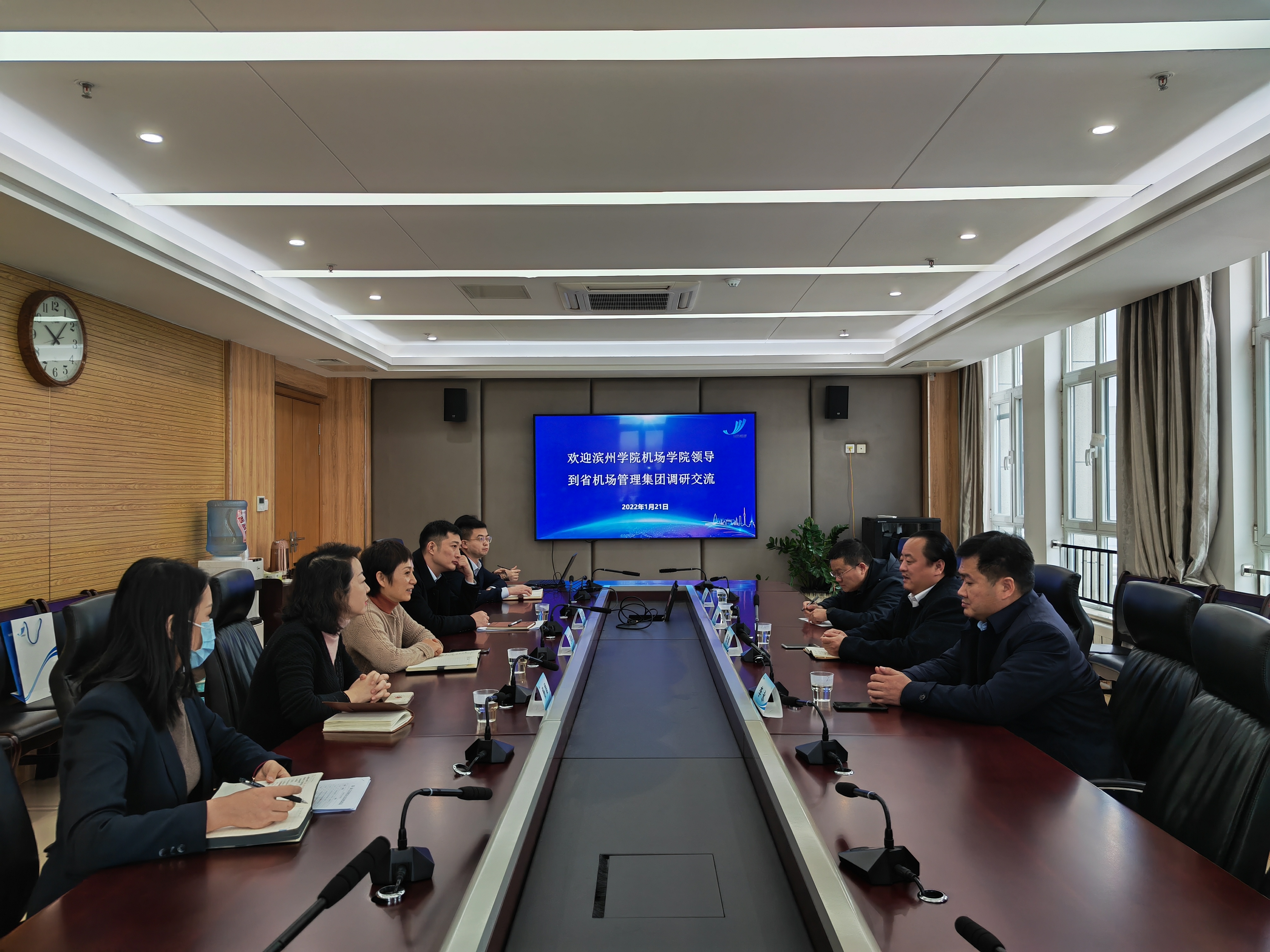 在山东机场管理集团有限公司,双方就学生实习就业、校企培训合作等方面展开深入交流,并在校园招聘、学习实习实训和员工教育培训等方面达成共识。