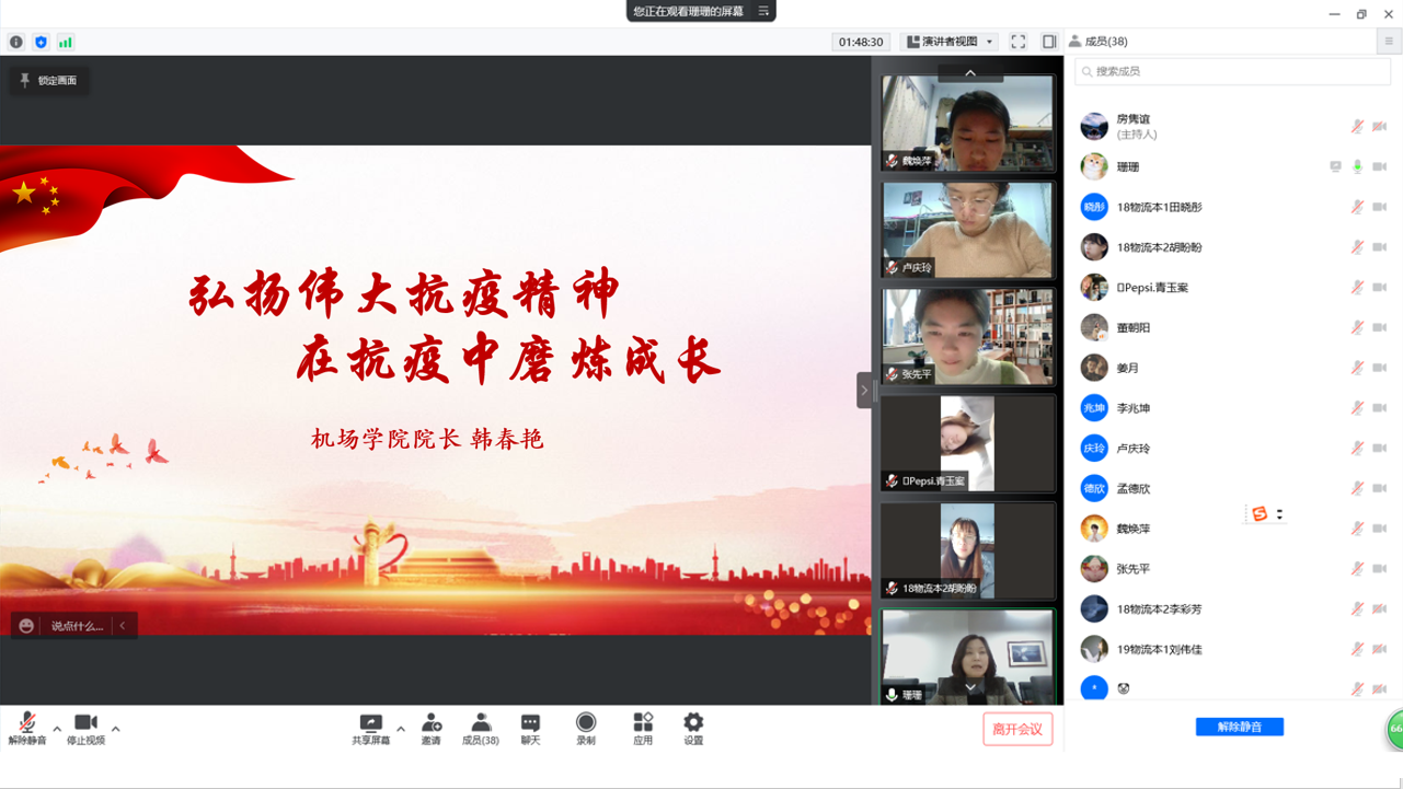 suncitygroup太阳成集团院长韩春艳为全体学生作思想政治教育报告‖弘扬伟大抗疫精神 在抗疫情中磨炼成长