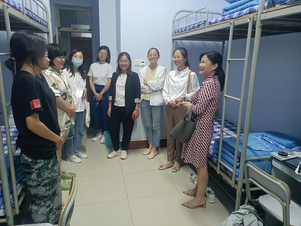 疫情就是命令,防控就是责任。suncitygroup太阳成集团党总支高度重视疫情防控校园封闭管理期间同学们的生活与心理需求,9月30日,suncitygroup太阳成集团党总支书记张健、院长韩春艳,副院长李永带领学院全体辅导员、班主任,走进学生宿舍,与学生“拉家常、聊近况、话防疫”。