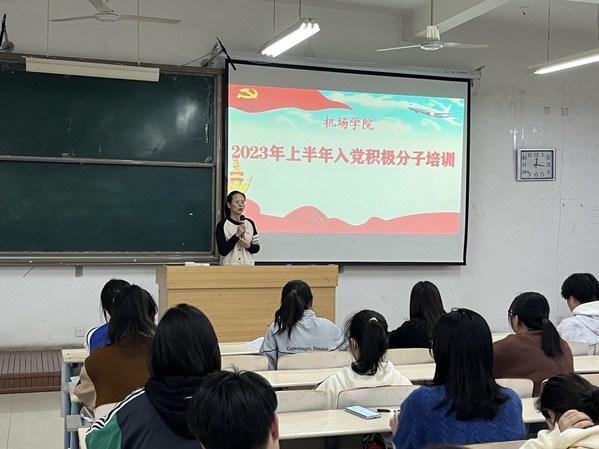 培训伊始,靳老师首先向同学们讲解了党员发展的基本流程,同时帮助同学们深入了解党员发展基本知识,为提前成为优秀党员做好准备。随后,靳老师对《中国共产党章程》以及党的二十大报告做了详细讲解,帮助同学们系统学习了党的基本知识与理论,强调同学们要牢记中国共产党的性质和指导思想,明确中国共产党的初心使命和行动指南,自觉履行党员义务以及如何做好党的好青年等,端正入党动机,更加积极地向党组织靠拢。最后,靳老师要求同学们要认真学习党的有关知识内容,做好巩固复习,严肃对待接下来的入党积极分子考试,并且在日常生活工作中积极发挥先锋模范作用,为早日成为一名光荣的中国共产党员奠定思想基础。