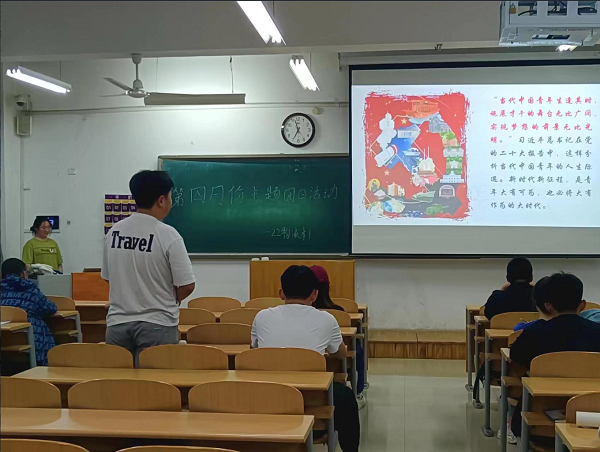 22物流本1团支部开展了有关“学习党的二十大,永远跟党走,奋进新征程”的主题团日。首先通过观看“庆祝中国共产主义青年团成立100周年宣传片《共青春》主题曲”来回顾中国共产党建党以来的百年历史。然后分析了党的二十大制定的全面建设社会主义现代化强国分两步走的总体战略。最后阐述了中国式现代化发展的战略目标、重大原则、战略部署以及一系列惠民暖民政策,为青年发展提供了机遇与保障。最后呼吁青年永远跟党走,奋进新征程,在这个大有可为的时代大有所为。