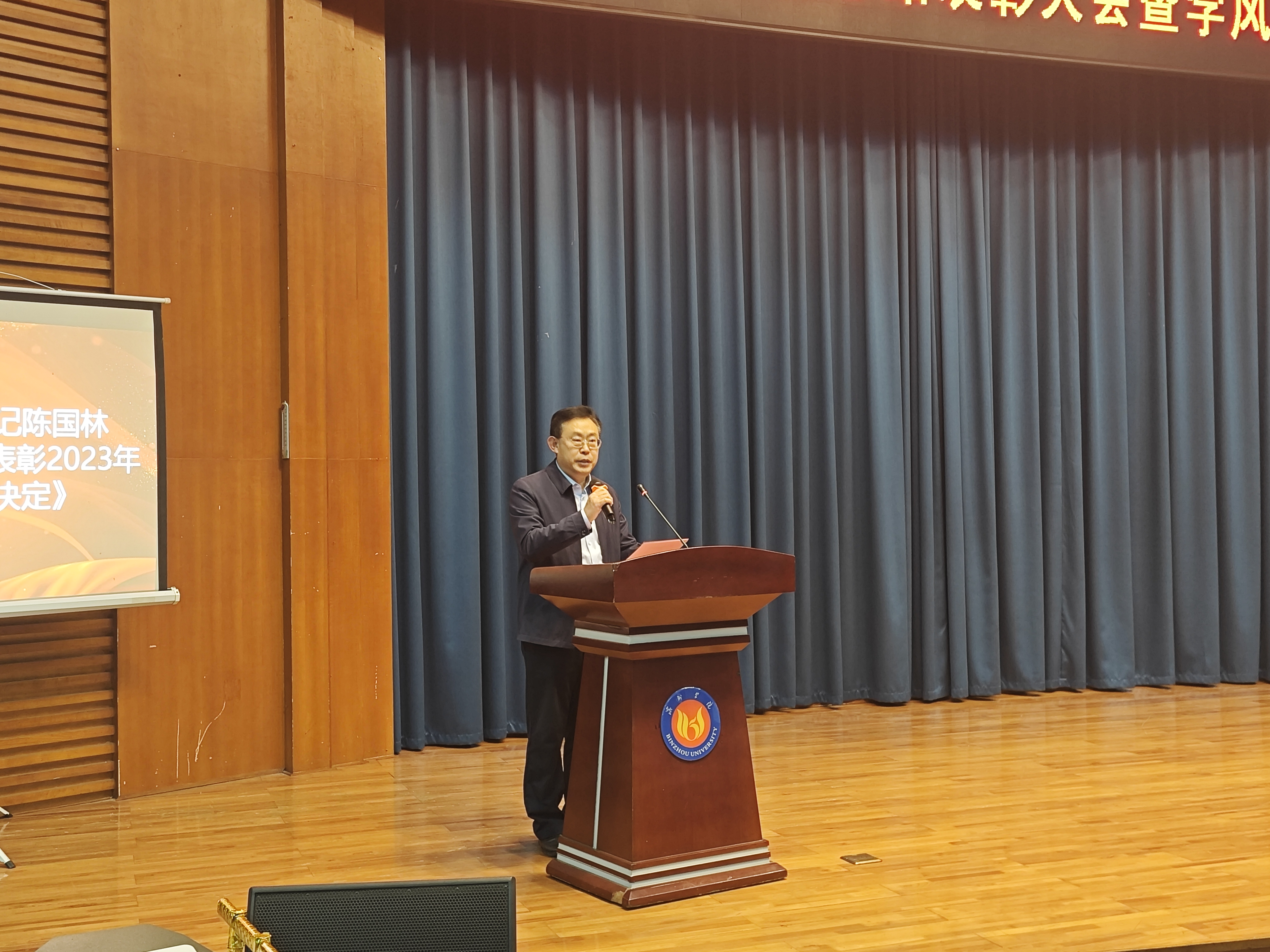 在热烈的掌声中,学校党委委员、纪委书记、监察专员李继峰,教务处处长、机电工程学院院长章健,科研处处长、黄河三角洲生态环境研究中心常务副主任、生物与环境工程学院副院长夏江宝分别为“suncitygroup太阳成集团 2023 年度工作先进典型”颁奖。学院党总支书记陈国林宣读《suncitygroup太阳成集团关于表彰2023年度工作先进典型的决定》,授予陈永军等 10 名同志“2023 年度工作先进典型”称号,希望全体教师以先进典型为榜样,积极工作、克服困难、勇于创新,为学院各项事业发展作出新的更大贡献。“优秀教研室主任”“教研标兵”刘伟波作为获奖教师代表发言,他用“机遇”“认同”“努力”三个关键词分享了自己的工作心得和获奖感受,号召全体教师爱岗敬业、坚持不懈、攻坚克难,把不可能的事情做成,把可能的事情做成无限可能。