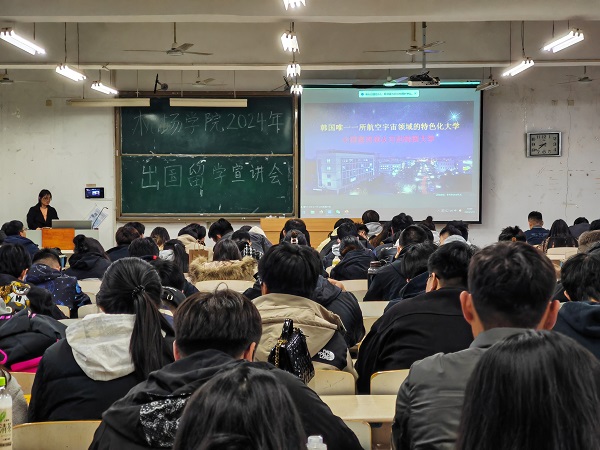 本次宣讲会采用线上和线下结合的方式,共邀请三位老师向我院学生介绍和分析了留学情况、申请方法等内容。首先由胡瑛琦老师介绍马来西亚留学,从费用、留学安全性、学校认可度等方面展开介绍。第二位老师采用线上宣讲的方式,向同学们介绍了韩国航空大学航空服务类专业招生说明,介绍了各种相关学部以及报名招生条件、学费、宿舍入住条件等等。第三位老师现场介绍了留学西班牙的相关信息,以我们为什么要留学展开叙述,主要围绕西班牙国家留学优势以及西班牙各大院校进行介绍。希望通过此次讲座,能够激发更多同学的出国留学热情,为他们提供更好的留学服务和支持。