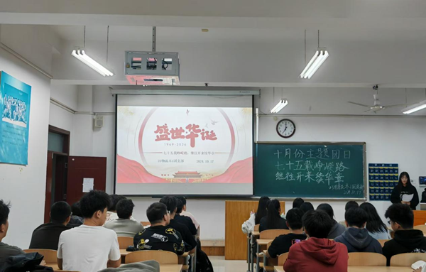 23物流本1团支部于2024年10月17日在9教502举办了以“七十五载峥嵘路,继往开来续华章”为主题的团日活动。团支部书记通过视频及图片讲解,使同学们深刻了解了我国七十五周年以来取得的成就和飞速发展。团支部成员踊跃发言,讲述自己家乡的红色发展故事,让其他成员意识到身边榜样的力量。同学们不仅深刻认识到自己肩负的历史使命和社会责任,并立志今后更加努力学习专业知识,提升综合素质,为祖国繁荣富强贡献自己的力量。24交工本1团支部于2024年10月17日在8教506举办了以“七十五载峥嵘路,继往开来续华章”为主题的团日活动。团支部书记通过引领观看爱国视频,讲解红色故事,激发了团员们的爱国热情、民族自豪感和责任感,引导团员们在新时代担当使命,为祖国建设贡献青春力量。24交工本2团支部于2024年10月15日在8教507举办了以“七十五载峥嵘路,继往开来续华章”为主题的团日活动。通过展现75年变迁的文学作品,从乡村振兴到城市的现代化建设,书中的内容如画卷般展开,让同学们对祖国的热爱更加深沉。大家探究了祖国大好河山在这75年里的开发与保护。生态环境的改善措施、资源的合理利用,这些知识让同学们明白祖国可持续发展的重要意义。24物流本1团支部于2024年10月15日在8教307举办了以“七十五载峥嵘路,继往开来续华章”为主题的团日活动。团支部书记通过文献资料搜集和讲解,激发了同学们的爱国热情,同学们表示:我们也将继续为世界和平与发展贡献中国智慧和中国力量,与各国人民携手共进,创造更加美好的未来。24物流本2团支部于2024年10月25日在8教510举办了以“七十五载峥嵘路,继往开来续华章”为主题的团日活动。团支部书记通过带领同学们回顾峥嵘岁月、分析当代挑战与机遇、讲解继往开来战略规划等形式,弘扬了核心价值观,强化了历史使命感。同时使大家认识到社会稳定、民族团结,为各项事业发展奠定了坚实基础。同学们表示:我们将继续坚持中国特色社会主义道路,不断深化改革、扩大开放,推动经济高质量发展,为祖国的发展添砖加瓦。