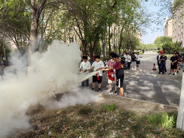 活动涵盖理论培训、疏散演练、实操灭火等多个环节。活动伊始,指导老师结合高校典型火灾案例,深入浅出地讲解了火灾预防、初期扑救及逃生技巧,重点强调了宿舍用电安全、实验室规范操作及消防通道畅通的重要性。通过触目惊心的真实案例和互动问答,师生们深刻认识到“隐患险于明火,防范胜于救灾”的现实意义。在消防技能实操环节,指导老师采用理论讲解与实际演示相结合的方式,详细阐述灭火器的工作原理、适用范围和操作步骤,同时演示了干粉灭火器“提、拔、握、压”四步操作法,让同学们初步掌握了灭火器的操作要点。随后进入实战演练环节,随着消防警报骤响,应急疏散演练正式启动,公寓楼内模拟突发火情,浓烟弥漫,各楼层引导员迅速到位,指挥师生弯腰低姿、捂住口鼻,沿预定路线快速撤离至操场安全区。整个疏散过程紧张有序,无拥挤、踩踏现象,达到了“快速、安全、有效”的演练目标。最后,学生们来到西外环,进行灭火器实际操作环节。现场准备了模拟火源,面对极具挑战性的场景,同学们按照专业知识以及工作人员的讲解,有条不紊地拿起灭火器,对准火源根部进行喷射。经过一次次的尝试,成功将火扑灭,现场响起阵阵掌声。至此,本次消防安全教育与演练活动圆满落下帷幕。