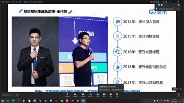 此次活动以视频会议的形式面向大家,向毕业生们展现了慧策集团迅猛的发展势头,以及其内部通畅的人才晋升通道。慧策的“鹰系列”培养计划是其人才发展的核心动力,这一基于岗位发展的人才培养体系,包含专业序列和管理序列的梯队建设,为不同发展路径的员工提供清晰成长规划,助力校招生在公司长远发展。此次校招岗位丰富,涉及产品、研发、销售、售后等多个领域。其中,销售管培生、实施管培生、软件售后技术支持(天津)、职能类(北京)等岗位需求较大。招聘流程包括宣讲会、网申/内推、笔试/测评、面试和发放Offer。慧策集团福利待遇优厚,提供无责底薪、补贴、高额提成/项目奖金以及六险一金,还有双休、法定节假日休息和带薪年假。想报名的同学可通过网申投递简历,网申地址为:https://huicecom.zhiye.com/Campus 。