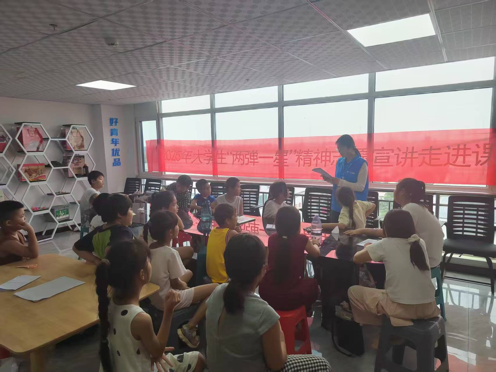 为传承红色基因,弘扬科学家精神,8月4日,“星”火“核”力宣讲团走进菏泽市东明县小井镇社区,为社区儿童带来一场生动有趣的“两弹一星”主题宣讲活动。宣讲团成员刘奕彤以通俗易懂的语言和丰富的互动形式,带领孩子们重温了那段艰苦卓绝却又热血沸腾的科技奋斗史。
