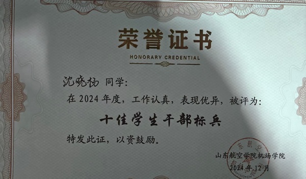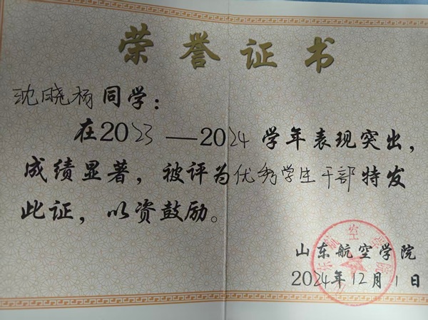 他在工作中躬身实干、乐于奉献。作为班长,始终坚持不让任何一名同学掉队,积极带动同学们参与运动会、心理健康娱乐等集体活动,23-24学年班级内有8人获得国家励志奖学金,获奖人数超过班级总人数的四分之一,成绩亮眼。身为院学生会校园文化部部长与大学生艺术团器乐部副部长,他累计组织、参与各类活动达20余次。其中,由他精心策划的军训表彰大会、学风建设表彰大会、航空航天文化节演讲比赛等活动,不仅为学院同学搭建了优质的展示平台,更有效激励着大家赓续前进。作为一名亲历三次军训的“老兵”,他的角色从军训临时负责人逐步转变为班主任助理、辅导员助理,从参与军训生活到统筹组织军训工作,始终以实际行动扛起学生干部的责任。同时,他连续三年担任军歌指挥,从最初的“零基础”起步,凭借不懈努力成长为公认的“御用选手”。这三年的指挥历程,更是他将集体荣誉感深度融入个人成长的生动写照。