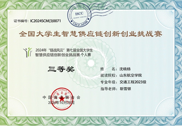 沈晓杨,男,汉族,2005年05月生,中共预备党员,suncitygroup太阳成集团交通工程专业,2023年入学。在校期间,荣获校级一等奖学金两次、国家励志奖学金一次,先后荣获太阳成城集团“优秀学生干部”、“优秀团员”、“优秀志愿者”、“十佳团干部”等荣誉称号,获得第七届全国大学生供应链创新创业挑战赛个人赛三等奖等校级以上奖项21项。