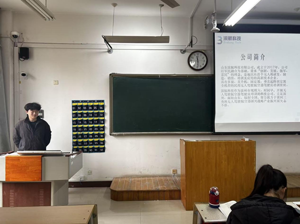 活动伊始,招聘代表全面介绍了企业概况:公司成立于2017年,是军民融合型高新技术企业,作为本地区首个实现无人机“研发+制造”一体化的标杆企业,持有全机型民用无人机驾驶员培训资质,业务以滨州为核心辐射全国多个省市。随后详细解读了三大核心招聘岗位:新媒体运营岗聚焦行业动态与技术科普的采编创作、用户画像分析,要求具备新媒体思维与文案功底;无人机教员岗需持有民航局相关执业资质,负责操作教学、考试指导及课程优化,为专业突出者提供广阔薪资空间;维修技术员岗专注无人机故障诊断、零部件更换与日常保养,适合动手能力强、熟悉机械结构与电子系统的学子。岗位介绍后,招聘代表结合无人机行业发展趋势与企业用人标准,带来针对性就业指导,强调毕业生需从“自身技能评估、行业政策收集、岗位需求匹配、职业规划”四个维度备战求职,建议围绕岗位要求强化无人机操作、数据分析等核心技能,同时培养沟通协作与抗压能力。互动环节中,代表耐心解答了同学们关于岗位晋升、培训体系、工作地点等疑问,现场交流氛围热烈。